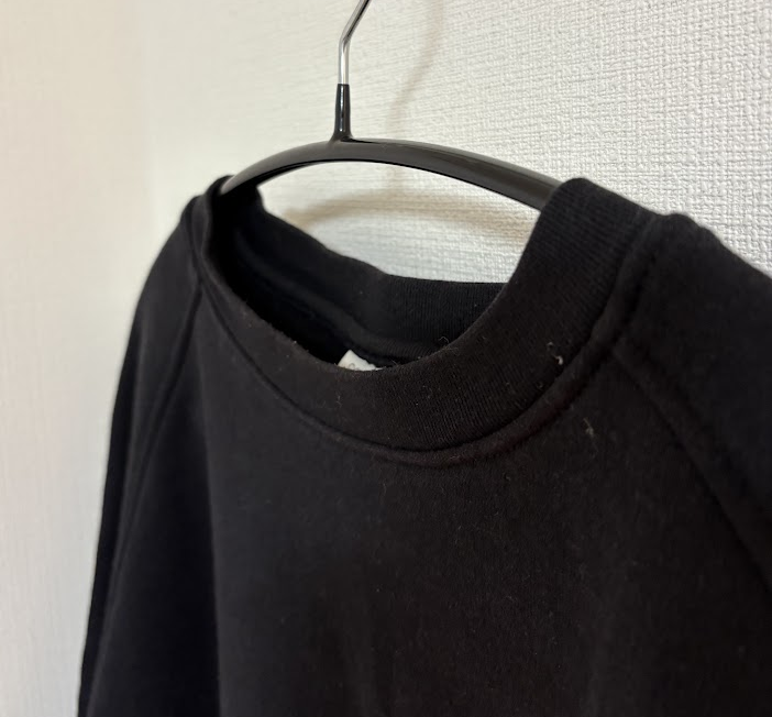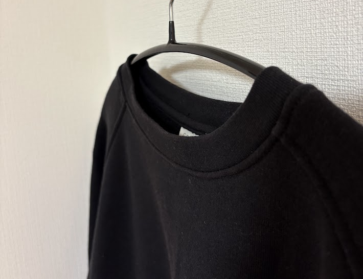 今回購入したcomoliのスウェットはセカストのオンラインでは商品の状態はBと表示されていました。実際購入して手に取ってみると、シミ・汚れや毛玉は見た感じ気にならず結構良いコンディションでした。ただ首元のヨレのところが若干ヨレヨレになっていたところが唯一気になったポイントです。