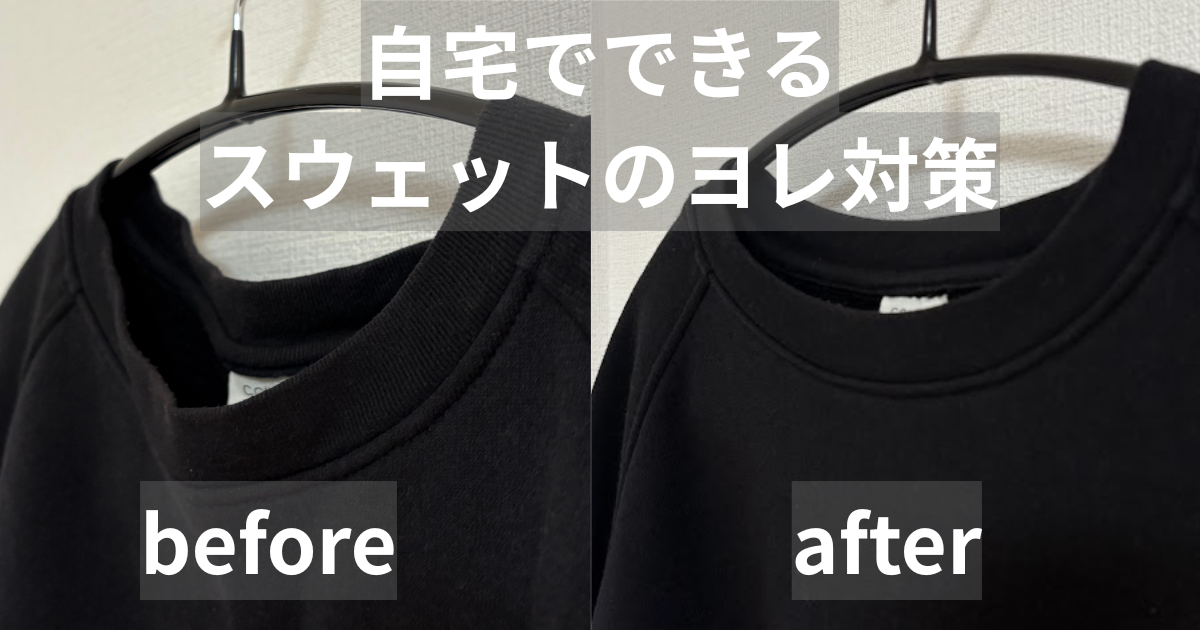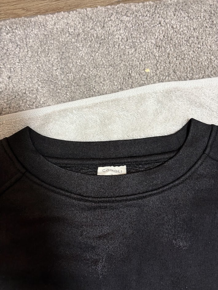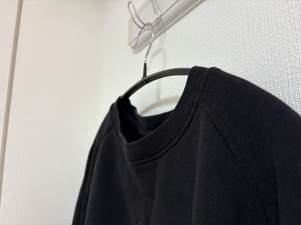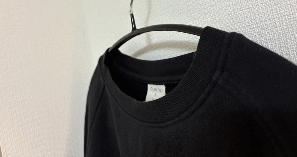 中古で購入したお気に入りのcomoliのスウェットのヨレが気になったので、今回このスウェットを使いながらヨレ対策の効果検証を実践してました!